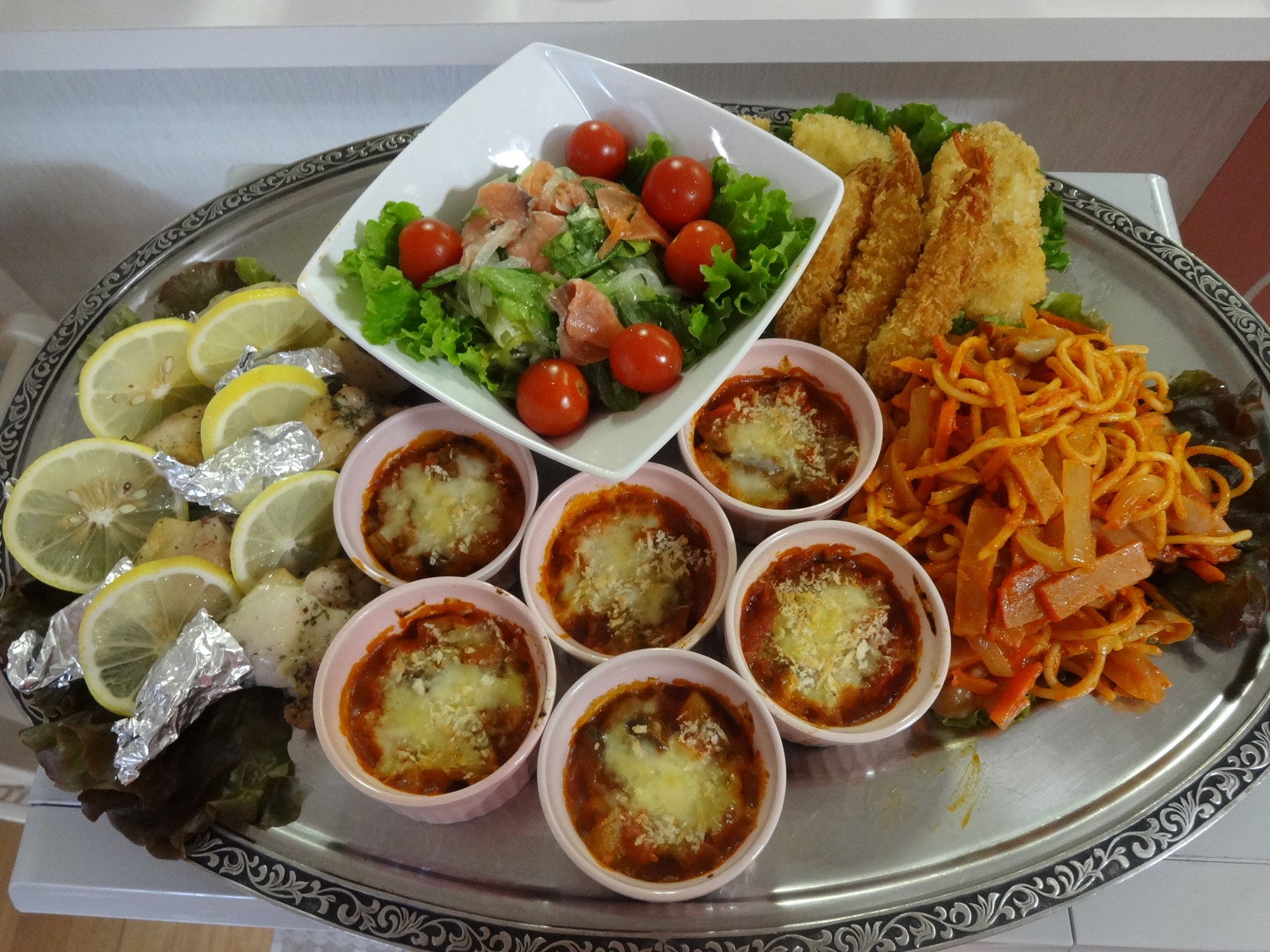 サーモンのマリネやナスのミートグラタン、ナポリタンに