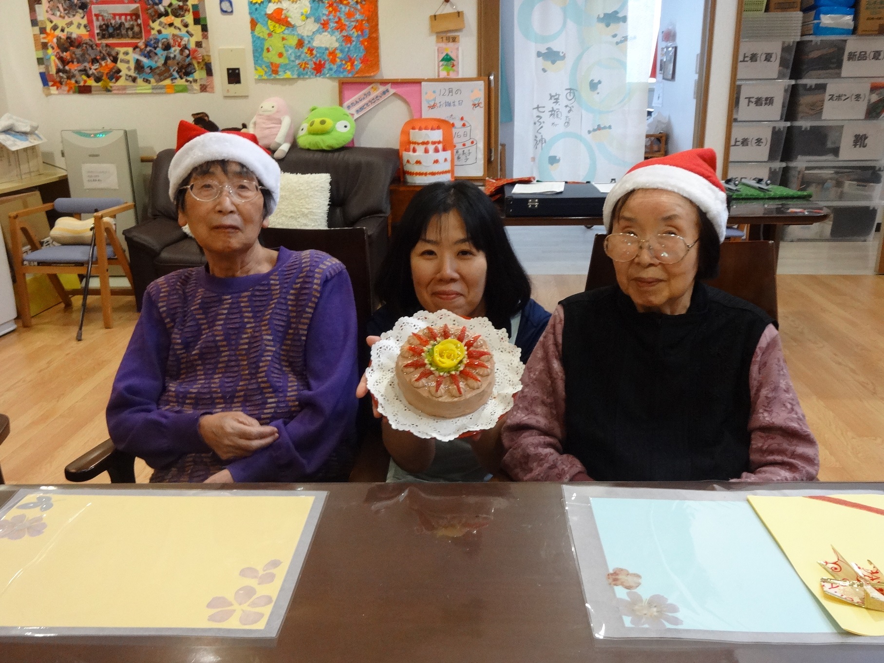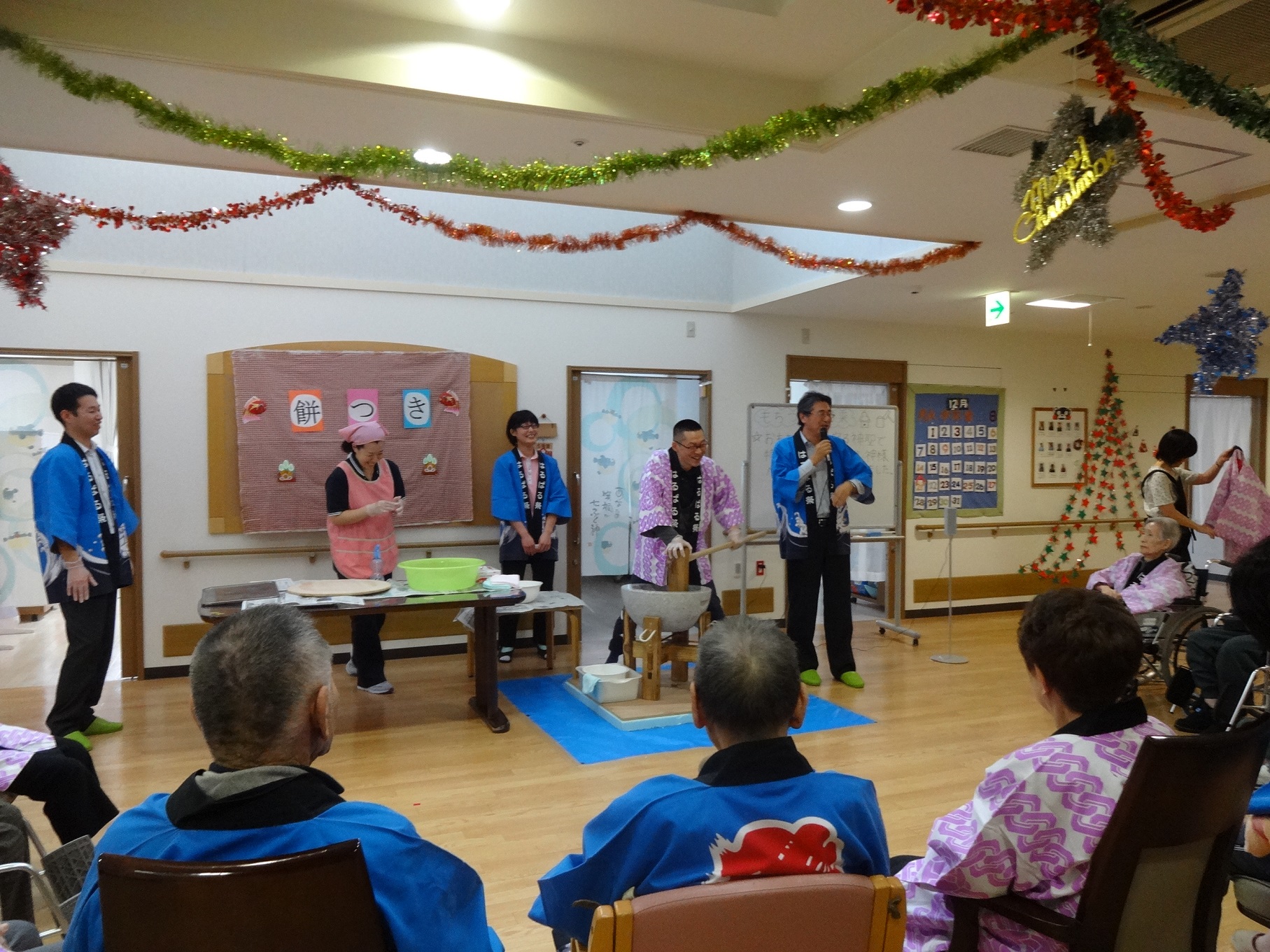 きらり~12月は行事がいっぱい~ 介護付有料老人ホームきらり|お知らせ 掲載日:2015.12.29 18日の昼食はクリスマスオードブルを行いました(*^^) サーモンのマリネやナスのミートグラタン、ナポリタンに 手羽元香草焼きなどなど・・・ ちょっぴり早いクリスマスプレゼントだね~と入居者様も 喜ばれていました。 21日は、ちょっぴり早い餅つき!! 入居者様には法被を着て頂き、「よいしょー!!」と掛け声。 男性職員力いっぱい餅をつきました。 腰の入れ方が甘いのは・・・今後善処します(-_-;) 入居者様の職員を見守るまなざし・・・ 皆様のおかげでなんとか無事つき終りました。 25日はクリスマス♪♪ 赤鼻のトナカイに変装した職員とサンタになった 入居者様での記念写真(*^。^*) クリスマスと言えば・・・・ ケーキですよね♡今回は厨房にお願いしてホールの ケーキを作ってもらいました(*^^)v とってもおいしいかったと好評でした! ゲームやプレゼントも喜んで頂けました。 それが職員にとっては最高のプレゼントでした☆ 今年最後の行事も笑顔で終わりました(^v^) 来年も素敵な笑顔になって頂ける企画を考えて行きたいと思います。