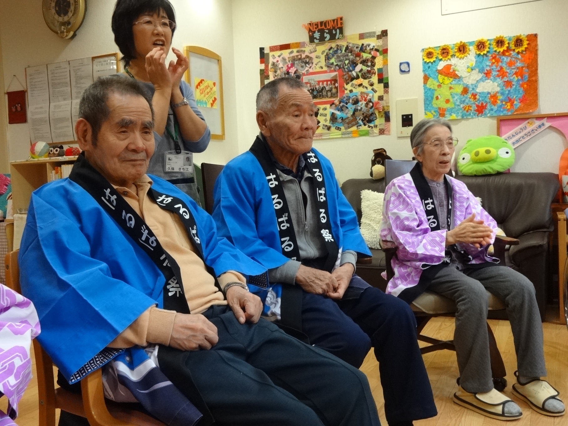 入居者様には法被を着て頂き、「よいしょー!!」と掛け声。