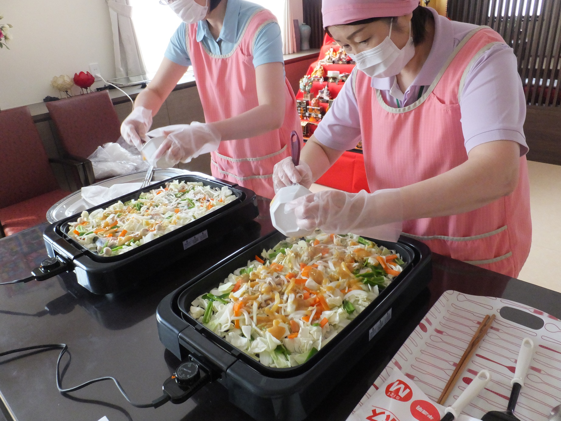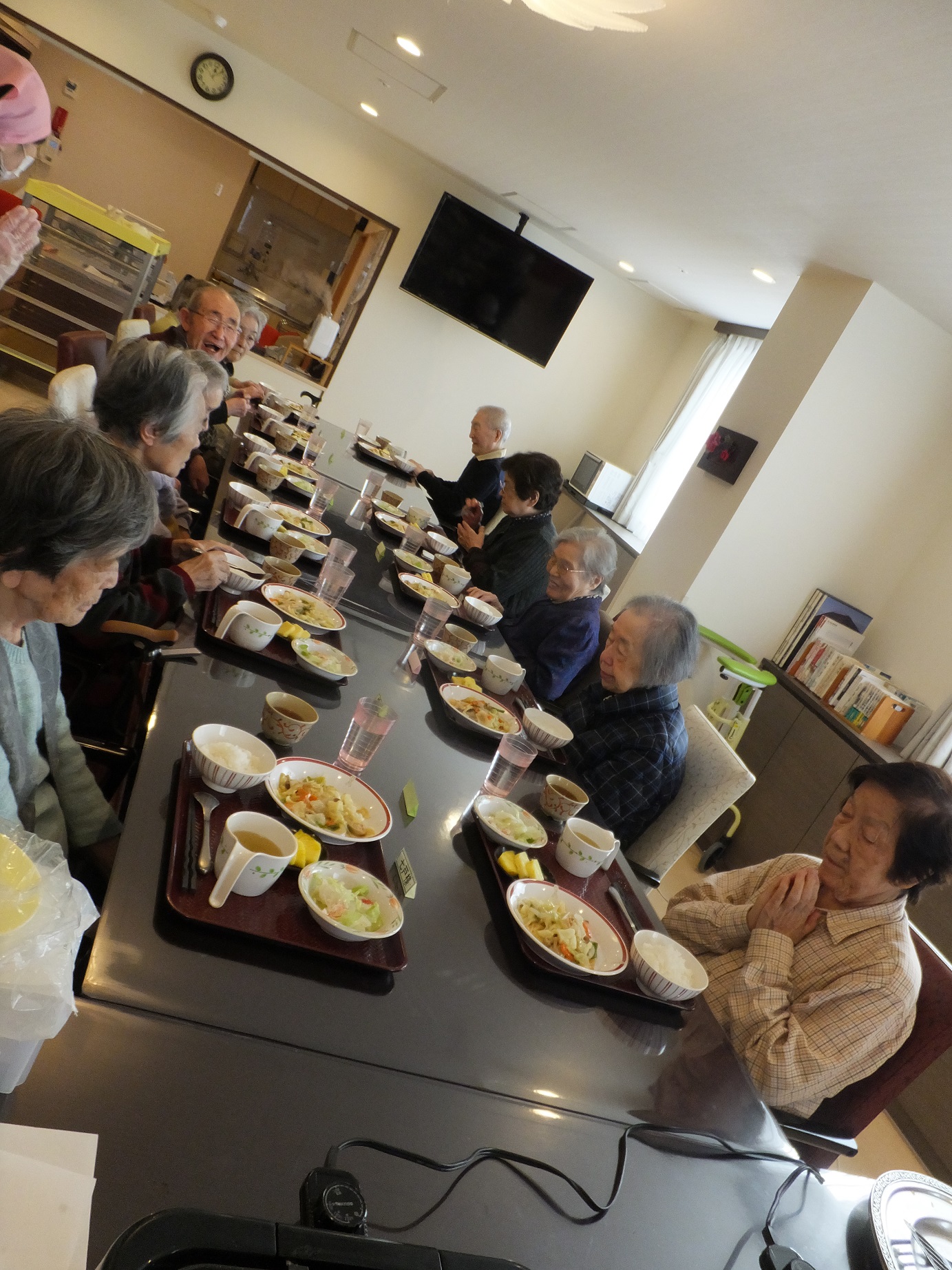 蓮音~今日の昼食は鮭ちゃん~ 医療法人はるにれ|お知らせ 掲載日:2016.02.19 蓮音の今月のお楽しみ食は 『鮭のちゃんちゃん焼き』 でございます! たまに、食事に出るんですが、ホットプレートでその場で調理するのは初 めてです♬ 2台のホットプレートに鮭をひきつめて、沢山の新鮮野菜 かぶせます みそだれとバターをたっぷり 乗せて10分程蒸します❤ 食堂中にバターのいい匂いが漂いま~す 時間前に匂いに誘われて 出てきた方も何人かいましたね・・・♪ 食事席もいつもと雰囲気を変えて パーティーテーブルにしています 声をそろえて いただきま~す 鮭ちゃんのドアップ写真はないのが残念ですが、バターの匂いを想像 してください・・・・・じゅわ~じゅわ~