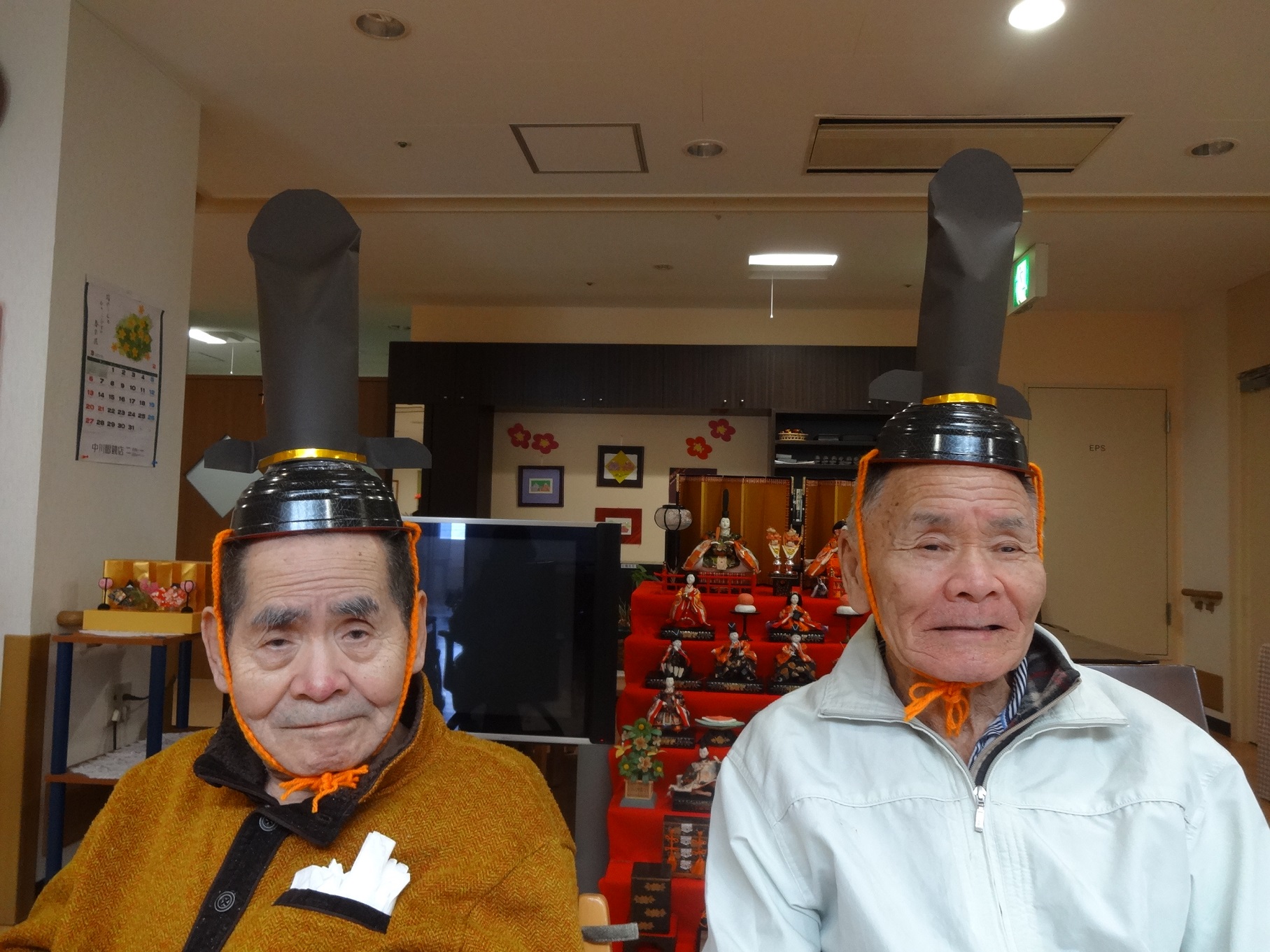 きらり~楽しい☆恥ずかしいひな祭り☆~ 介護付有料老人ホームきらり|お知らせ 掲載日:2016.03.09 3月3日はお雛様☆ きらりでもひな祭りを行いました(^。^)y 入居者様には、お雛様とお内裏様に 変身して頂きました☆ 皆さんとってもお似合いでした♡ 素敵なお内裏様(*^_^*) 実はこの烏帽子、器と紙コップを使った職員手作り です~!! 入居者様に塗り絵をして頂き、貝合わせゲームと言う名の 神経衰弱やひな祭りに関わる〇☓クイズを行い盛り上がりました。 ゲームで盛り上がった後は、ひな祭りの代表?おやつ 桜餅&ひなあられを召し上がっていただきました☆ 一番盛り上がったのは、職員のこの顔でした。 こう見えても、お雛様と御内裏様の変装です(-_-;) 決して、バカ〇ではないのであしからず・・・