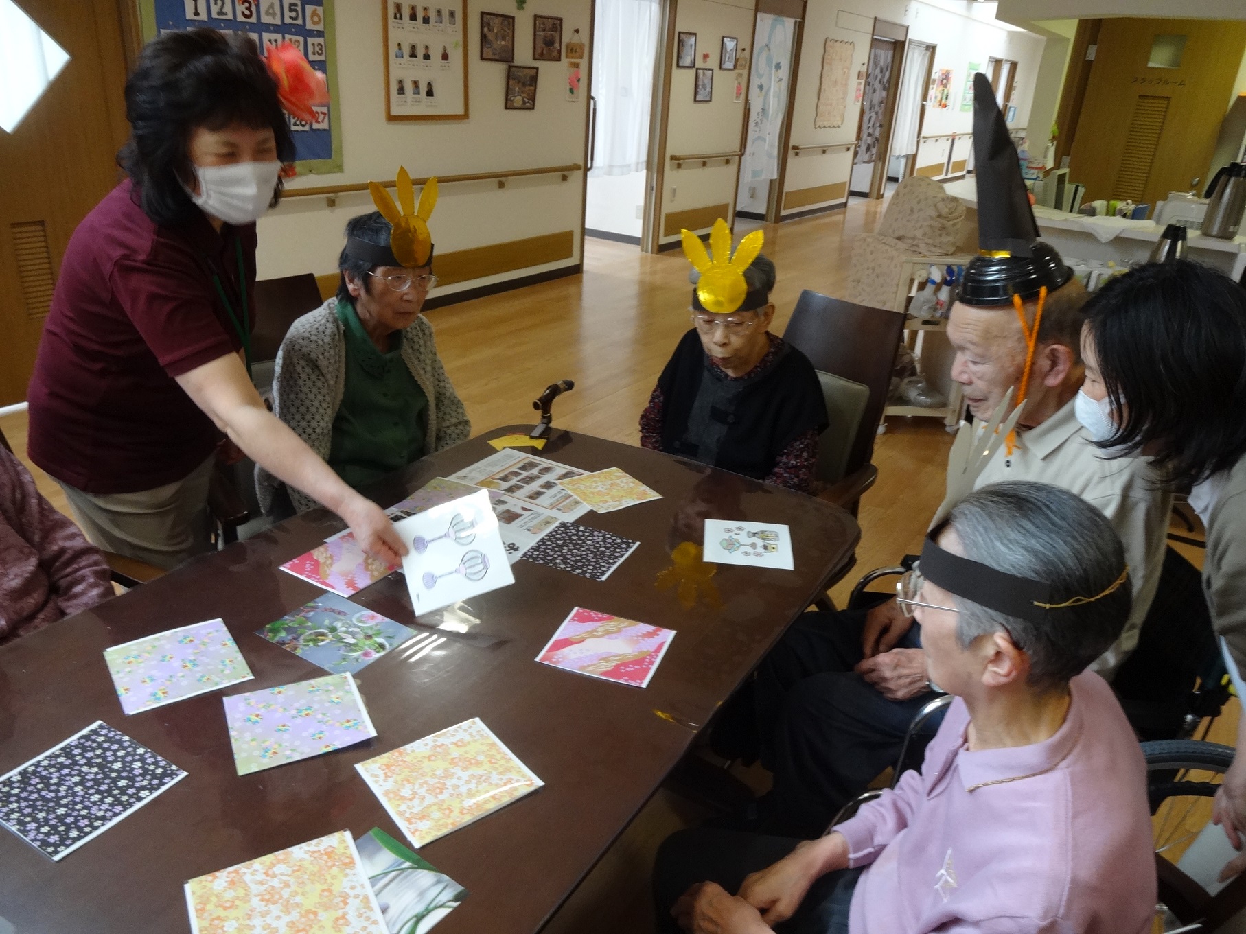 入居者様に塗り絵をして頂き、貝合わせゲームと言う名の