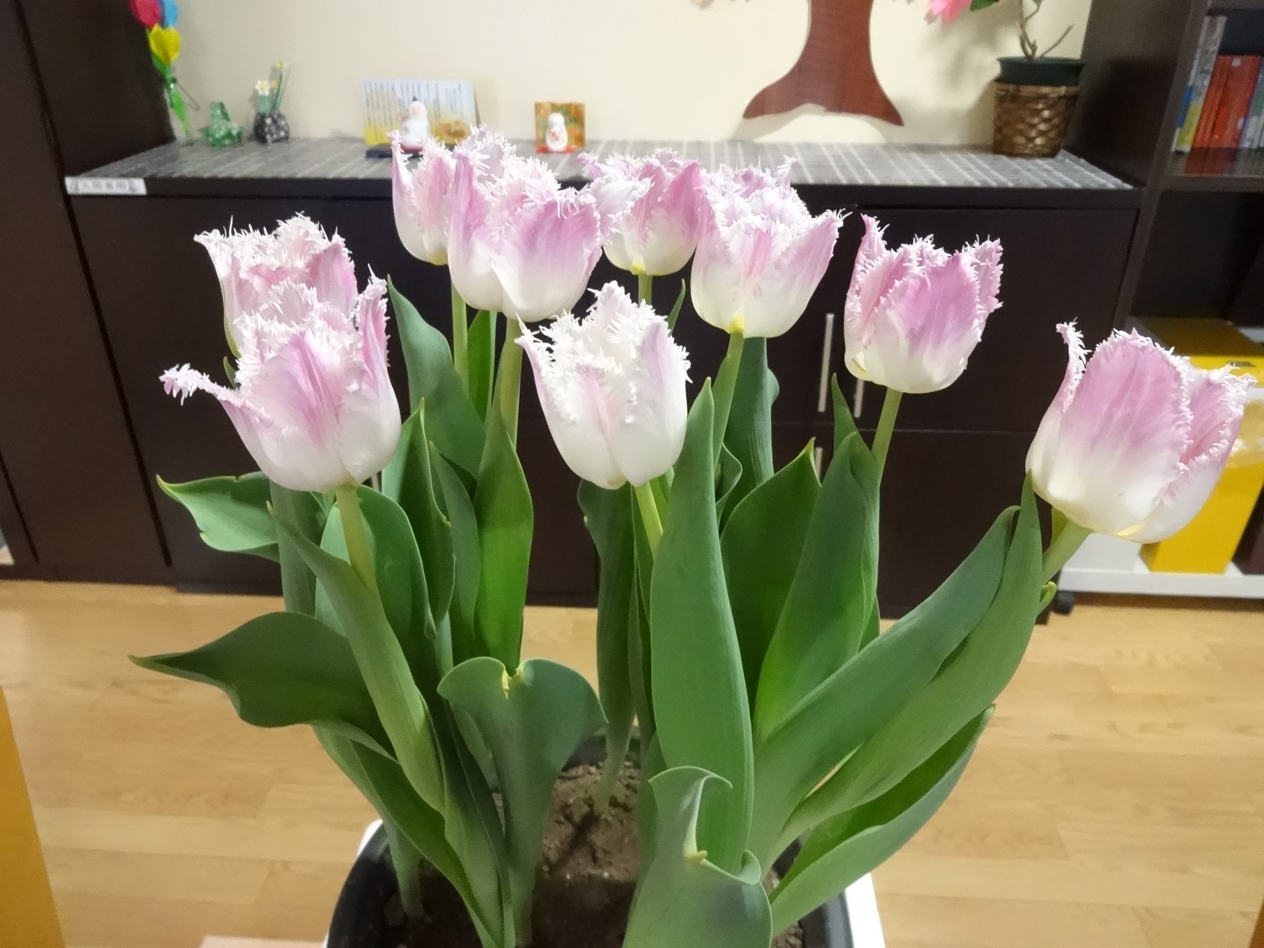 チューリップの鉢を並べてきらりお花畑を作成!!