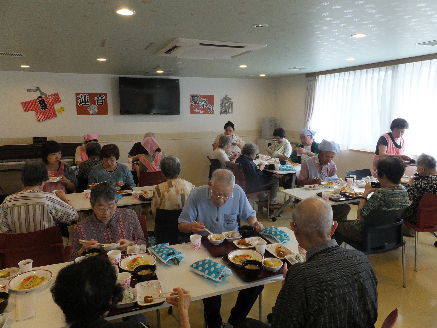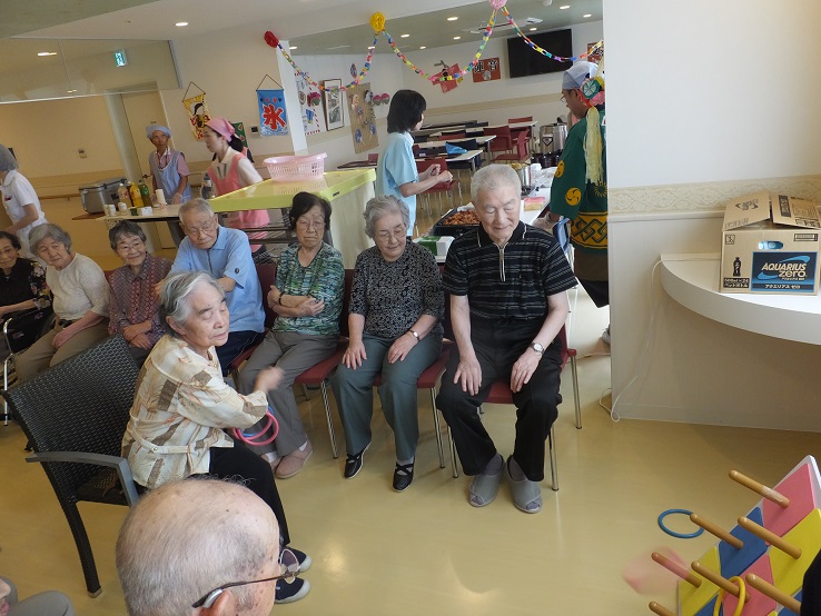 蓮音~夏が来た!祭りが来た!~ 医療法人はるにれ|お知らせ 掲載日:2016.08.12 8月3日は天候にも恵まれ祭りに最適な日となりました❤ さぁ、蓮音の夏祭りの幕開けだ~ 第1幕は厚別のわんぱく保育園の園児さん によるよさこい踊りからスタートです! 元気のいい声が施設中に響きます (ソレソレ~) 会場を3階に移して輪投げに挑戦です 一位目指すぞーと力が入っております 応援にも熱が入ります (*^^)v その間ご家族様と職員は屋台の準備です 温めるものが多くて汗だくです・・・ 今回の屋台は 塩やきそば・たこやき・ザンギ ミニドック・じゃがバター・豚汁・おにぎりです! デザートには スイカ カキ氷 2時間のお祭りはあっという間に過ぎてしまいました まだまだ暑い夏は続きそうです!楽しいことを沢山して乗り切って行きましょうね~