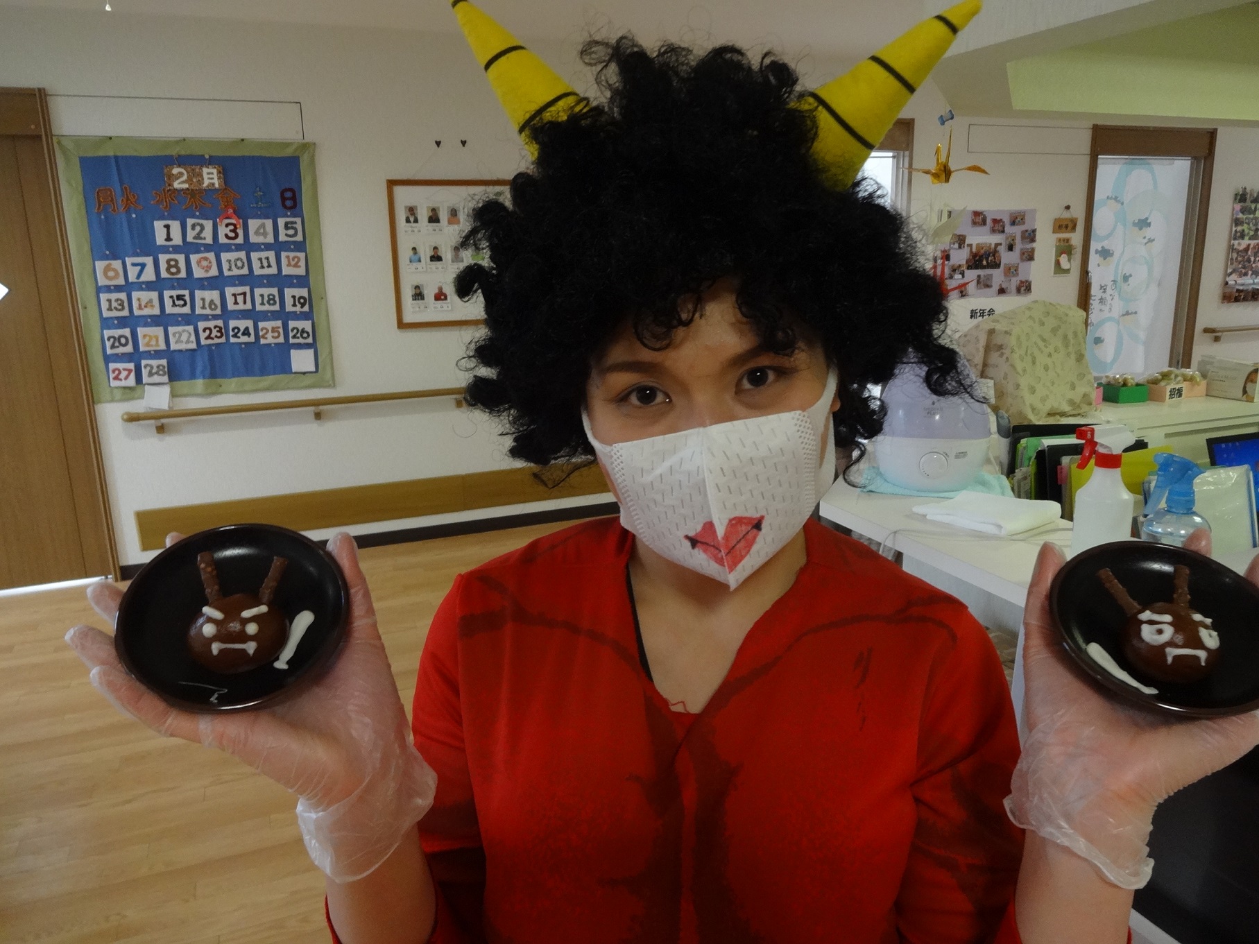 今年は、入居者様一人一人のお部屋に鬼が登場しました。