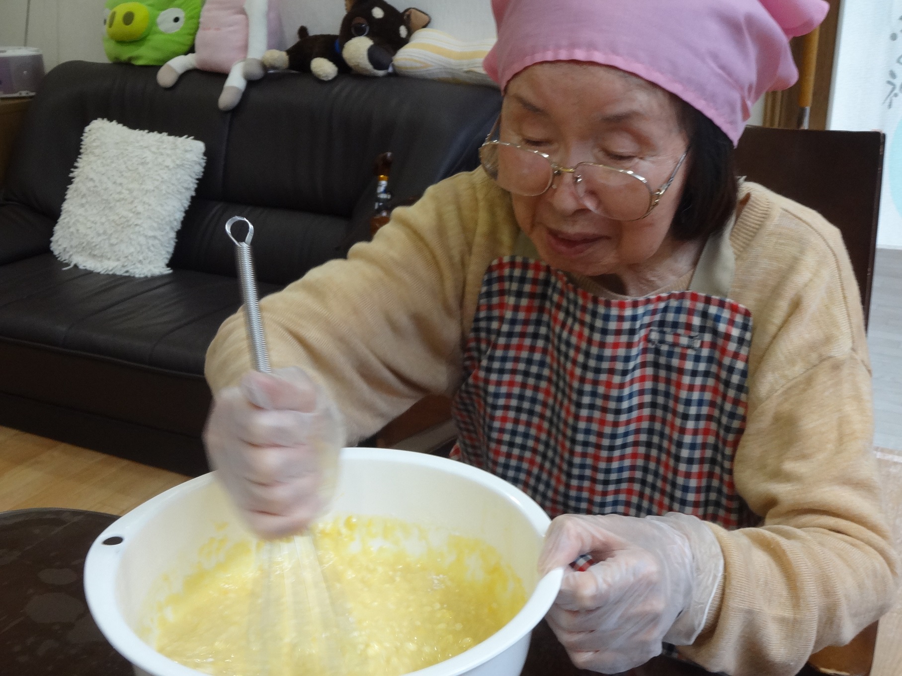 12日に入居者様と一緒にミニどら焼きを作りました。