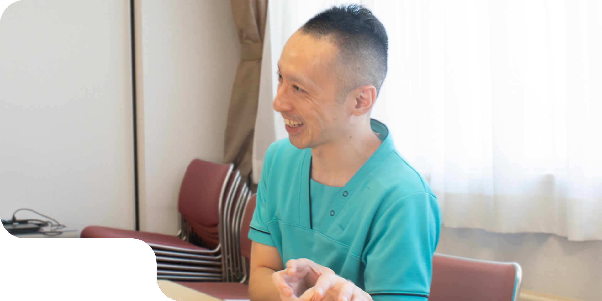 2016年年7月に老健施設はるにれへ入職し、現在は介護職員リーダーとして勤務。前職でも12年間老健で経験を積み、現場の実務にも精通。2023年には第一子誕生を機に約3ヶ月の育児休業を取得。現在は再び2度目の育休に入る予定で、家庭と仕事を大切に両立する働き方を実践中。育児の大変さを肌で感じながら、家族との時間の尊さを実感している。